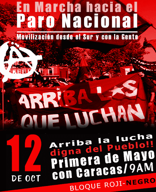 - La única salida a la situación actual que están viviendo los de abajo es la movilización y la protesta social. Como comunistas libertarios apoyamos todo acto simbólico que deslegitime el poder estatal que es el creador de la guerra perpetua contra los oprimidos en búsqueda de generar beneficios a la burocracia parlamentaria y a la burguesía nacional y extranjera. Sin embargo no olvidamos que la destrucción del estado, la propiedad privada y el capitalismo no se hace mediante una protesta sino que la única manera para llegar a una sociedad sin explotación ni dominación es la revolución realizada por las clases subalternas sin ningún partido ni autoridad. Del mismo modo, pensamos que la movilización del viernes 12 de Octubre es una buena oportunidad para empezar a crear corazones subversivos y que es nuestra preparación para afrontar retos más difíciles como es la implementación de una sociedad anarquista.